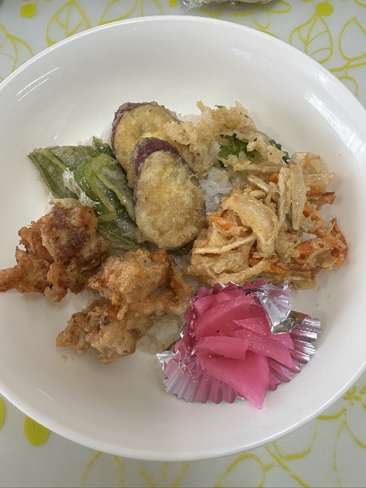 本日の弁当は、初の天丼、とり天・野菜天丼です。